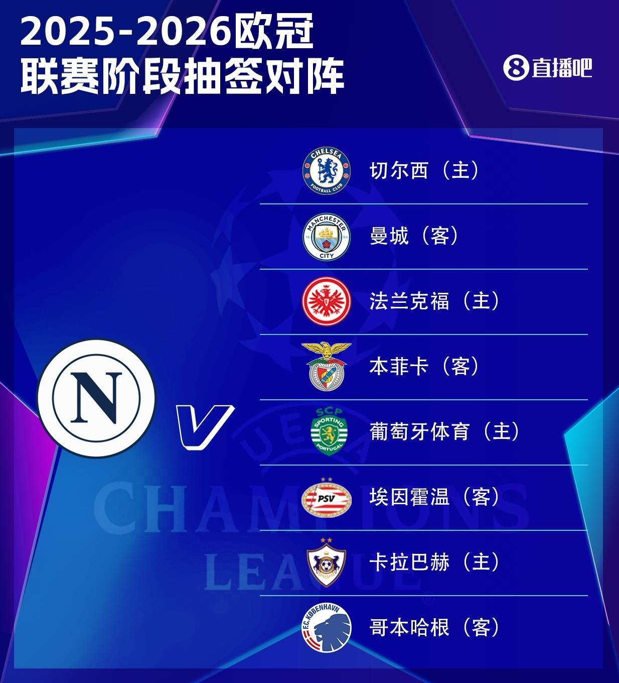 第7轮:2026年1月21日04:00,客场对阵哥本哈根。